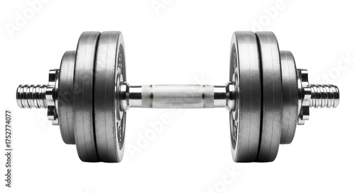 Fototapeta premium Adjustable Chrome Dumbbell For Strength Training On Black Background