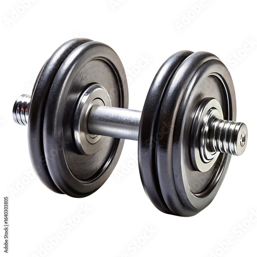 © Md. Habibur, Naklejka premium Adjustable dumbbells with multiple weight plates on a black background