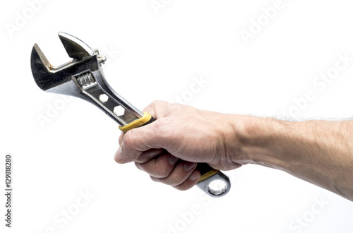 © Alakin_Maksim, Obraz premium adjustable spanner in hand on a white background