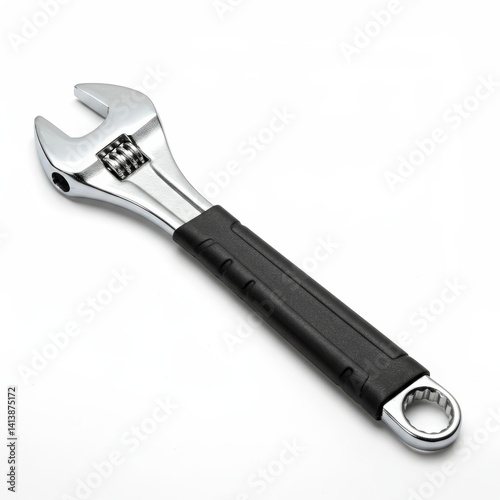 © Manji, Obraz premium Adjustable Wrench Tool Close-up on White Background