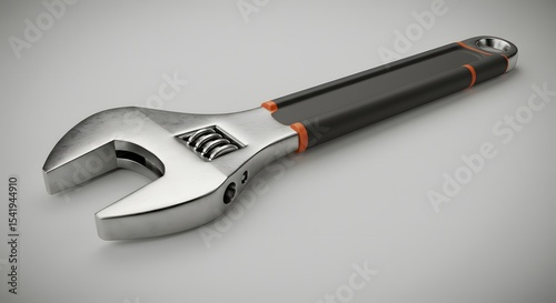 © ADEV, Obraz premium Adjustable Wrench with Black and Orange Handle - 3D Render