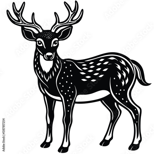 © Sumona, Obraz premium Adobe IllustrBlack deer silhouette on white background. Deer silhouette vector. Animal silhouette. Deer vector Illustration.ator Artwork
