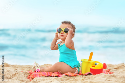 © Africa Studio, Naklejka premium Adorable African-American girl on beach