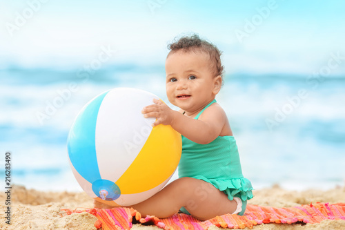 © Africa Studio, Obraz premium Adorable African-American girl playing on beach