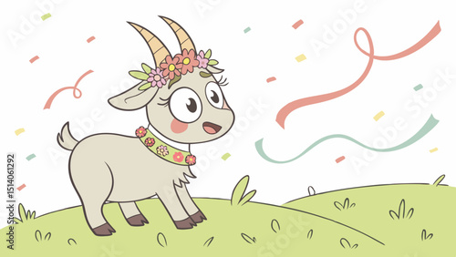 © Vector Bloom, Fototapeta premium Adorable AI-Generated Goat Illustration Festive Springtime Design