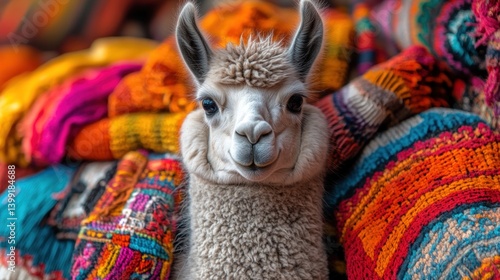 Obraz premium Adorable Alpaca Amidst Vibrant Andean Textiles