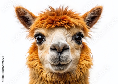 © prapatsorn, Obraz premium Adorable Alpaca Face Close-Up, Isolated White Background - Night Photography Stock Photo