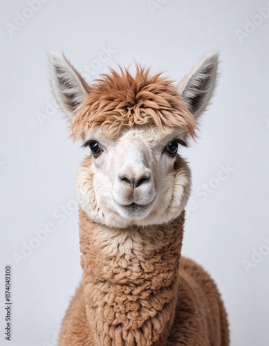 Obraz premium Adorable alpaca portrait against a light background Soft fluffy fur and...