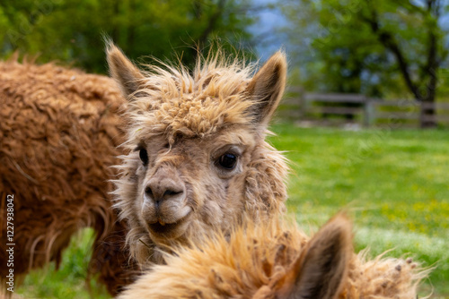 © vStock, Fototapeta premium Adorable Alpaca with Fluffy Fur in a Sunny Pasture