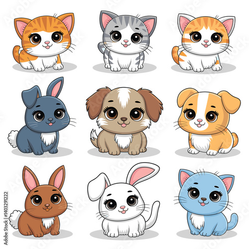 © Thanhtung, Fototapeta premium Adorable Animated Animals with Big Expressive Eyes