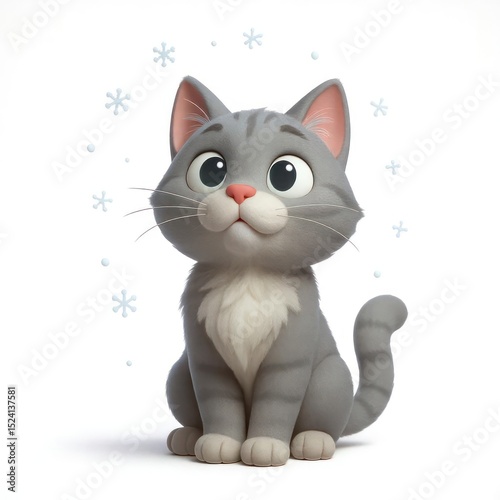 Fototapeta premium Adorable animated gray cat winter wonderland character art playful environment front view whimsical vibes for cat lovers