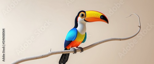 © Den Boro Day, Obraz premium Adorable Animated Toucan Perched on a Branch.