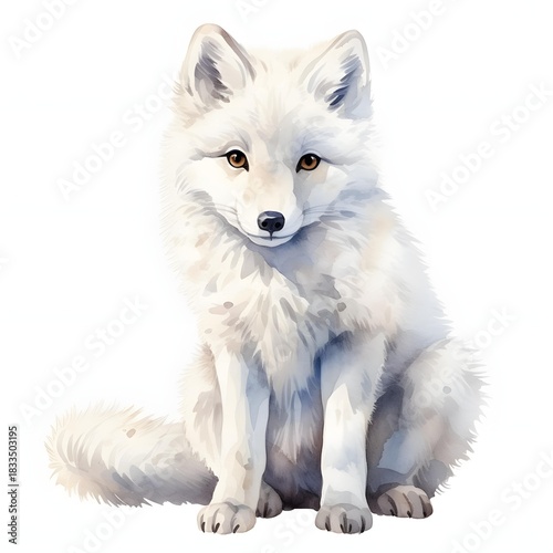 © Studicon, Fototapeta premium Adorable arctic fox sitting and looking forward with bright eyes and fluffy fur