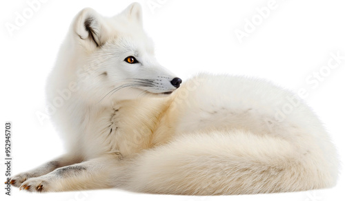 © Nemanja, Fototapeta premium Adorable arctic polar fox isolated on transparent background, a beautiful and cute wildlife animal with fluffy white fur, portrait