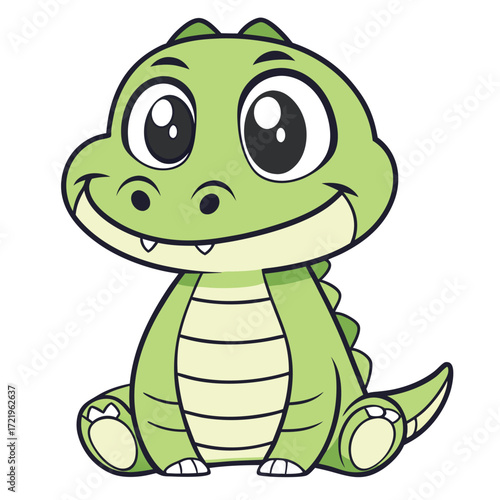 Fototapeta premium Adorable Baby Alligator Cartoon Character Smiling with Big Eyes Sitting Down...