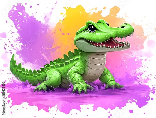 Obraz premium Adorable Baby Alligator Cartoon Illustration