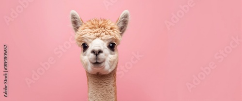 Obraz premium Adorable baby alpaca with a pink backdrop