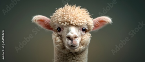© Starkreal, Obraz premium Adorable Baby Alpaca with Fluffy Coat in a Pastoral Setting