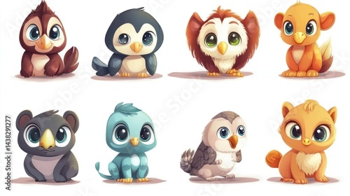 Fototapeta premium Adorable Baby Animals Cartoon Collection: Eight Cute Wildlife Creatures