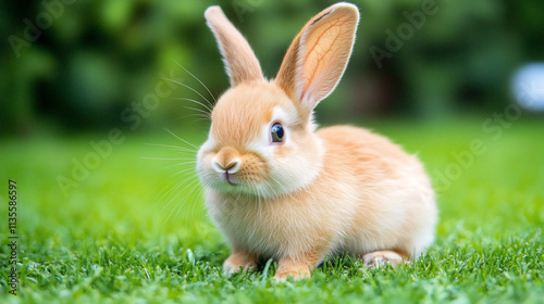 Obraz premium Adorable baby bunny rabbit sitting in green grass.