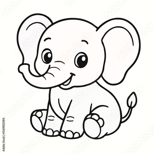 Fototapeta premium Adorable Baby Elephant Cartoon Coloring Page for Kids