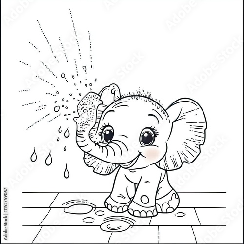 Obraz premium Adorable Baby Elephant Sprays Water Joyfully Playing