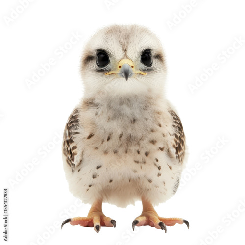© Araf, Naklejka premium Adorable baby falcon chick fluffy feathers large eyes wildlife isolated on a transparent background