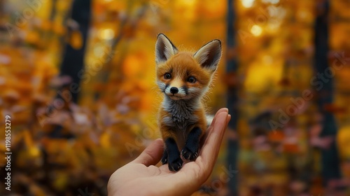 © Anak, Fototapeta premium Adorable Baby Fox in Autumn Woods