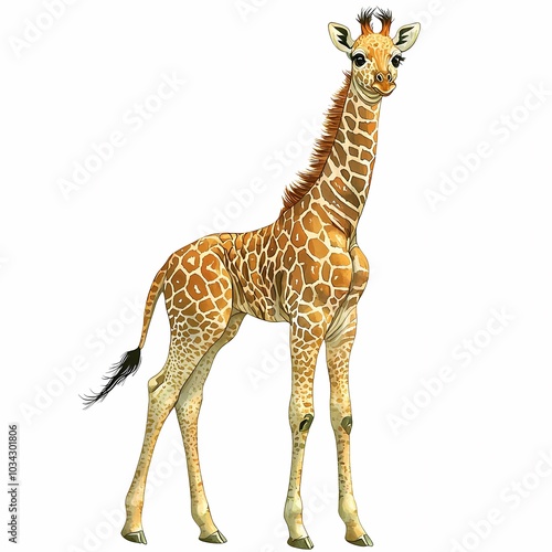 © possawat, Obraz premium Adorable Baby Giraffe Watercolor Portrait