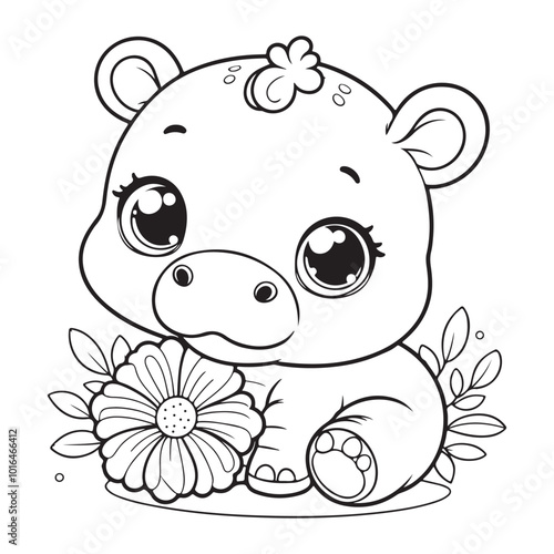 © Milon Store, Fototapeta premium Adorable Baby Hippo Coloring Page Free Printable for Kids