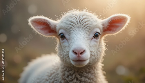 © Pixsite, Fototapeta premium Adorable Baby Lamb Facing the Camera in Soft Sunlight