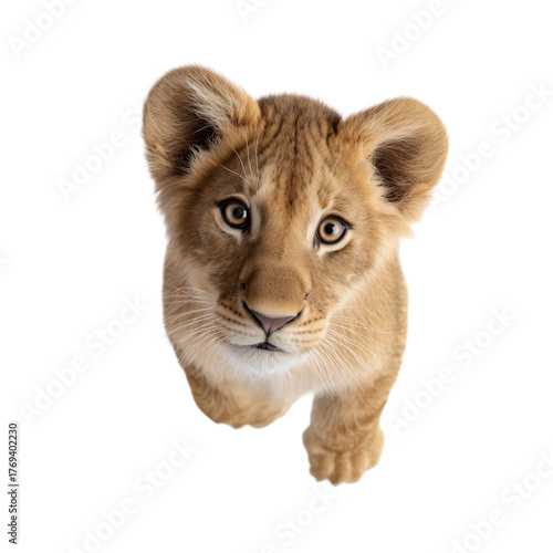 © Sunny_nsk, Fototapeta premium Adorable Baby Lion Looking Upward Curiously
