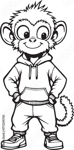 © Hammad, Fototapeta premium Adorable baby monkey cartoon coloring page outline