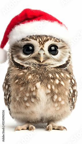 © bcendet, Naklejka premium Adorable baby owl wearing a Santa hat