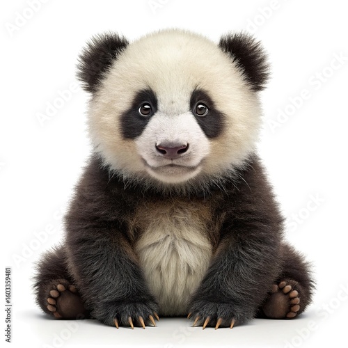 © Md, Naklejka premium Adorable baby panda bear cub sitting portrait cute animal wildlife species zoo isolated on white background