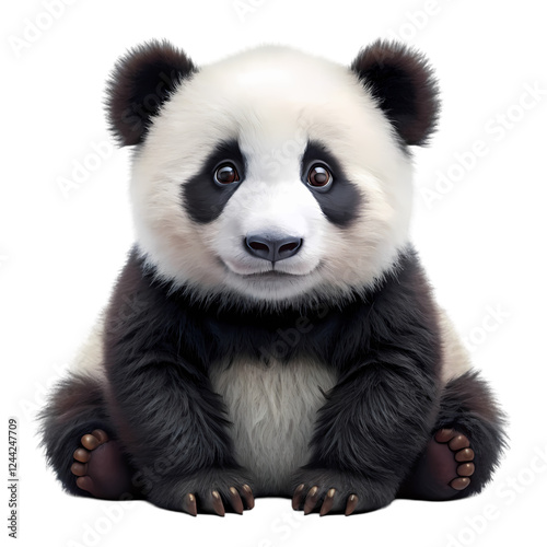 Fototapeta premium Adorable baby panda cub sitting isolated on zoo art cute white fauna image on transparent background