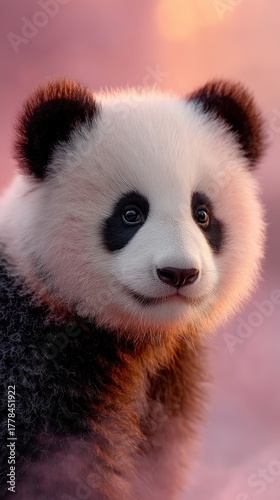 © wahyu, Fototapeta premium Adorable Baby Panda Portrait with Soft Pink Background.