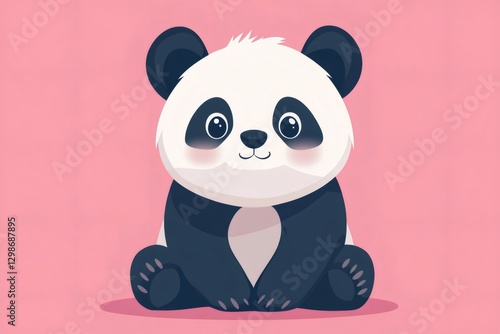 © Gatherina, Obraz premium Adorable baby panda sitting and smiling on pink background
