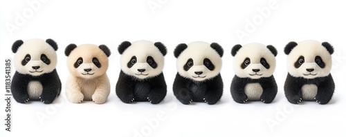 © aminsmart, Obraz premium Adorable Baby Pandas Sitting In A Row