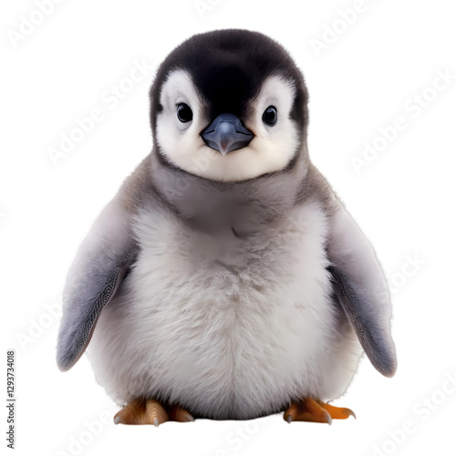 © mian, Naklejka premium Adorable Baby Penguin Chick Fluffy Cute Wildlife Animal Bird Polar Nature ice snow gray beak eyes
