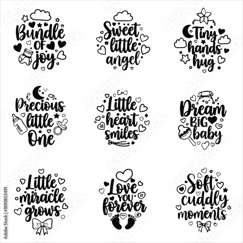 Fototapeta premium Adorable baby quotes and illustrations