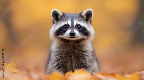 © Diki prayoga, Fototapeta premium Adorable Baby Raccoon In Autumn Leaves