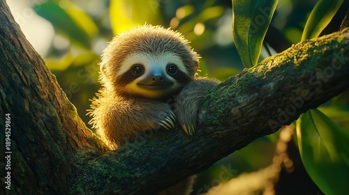Obraz premium Adorable Baby Sloth Posing in a Lush Rainforest Canopy