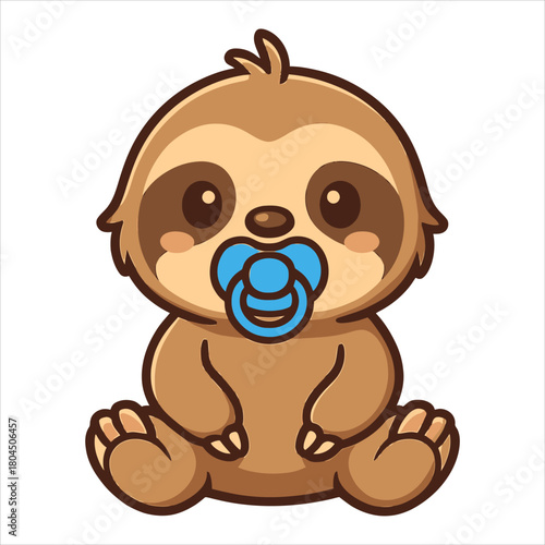 Fototapeta premium Adorable Baby Sloth with Pacifier Flat Vector Logo Illustration in 14