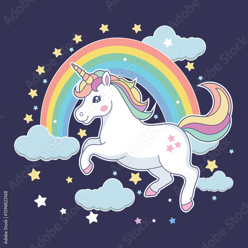 © laky, Fototapeta premium Adorable Baby Unicorn Cartoon Vector Artwork Illustration for Children – Perfect for T-Shirt Design, Birthday Cards, Stickers, and Nursery Decor