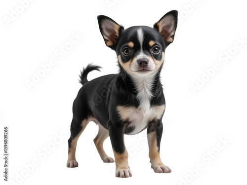 © stockpro, Obraz premium Adorable Black and Tan Chihuahua Standing Confidently on White Background