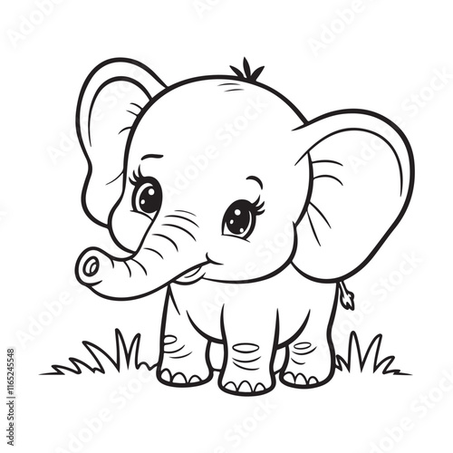 © ArifulHaq, Fototapeta premium Adorable Black-and-White Baby Elephant Illustration in Cozy Cutie Style