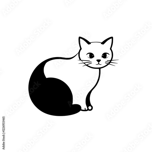 © MatandSterre, Obraz premium Adorable Black and White Cat Illustration - Simple Pet Design