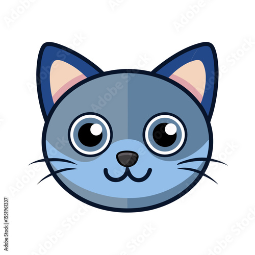 Obraz premium Adorable blue and gray cartoon cat face with big eyes