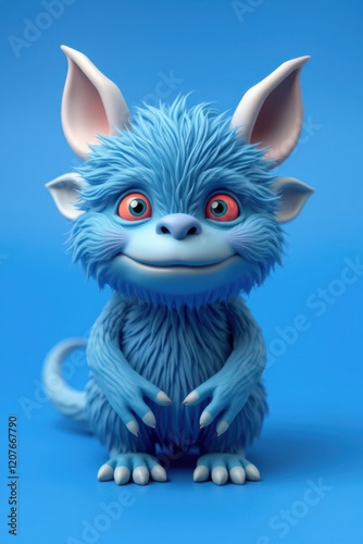 © Ardi, Fototapeta premium Adorable blue furry creature with big eyes and pointy ears. Perfect for children's books, animation, or cute character design.
